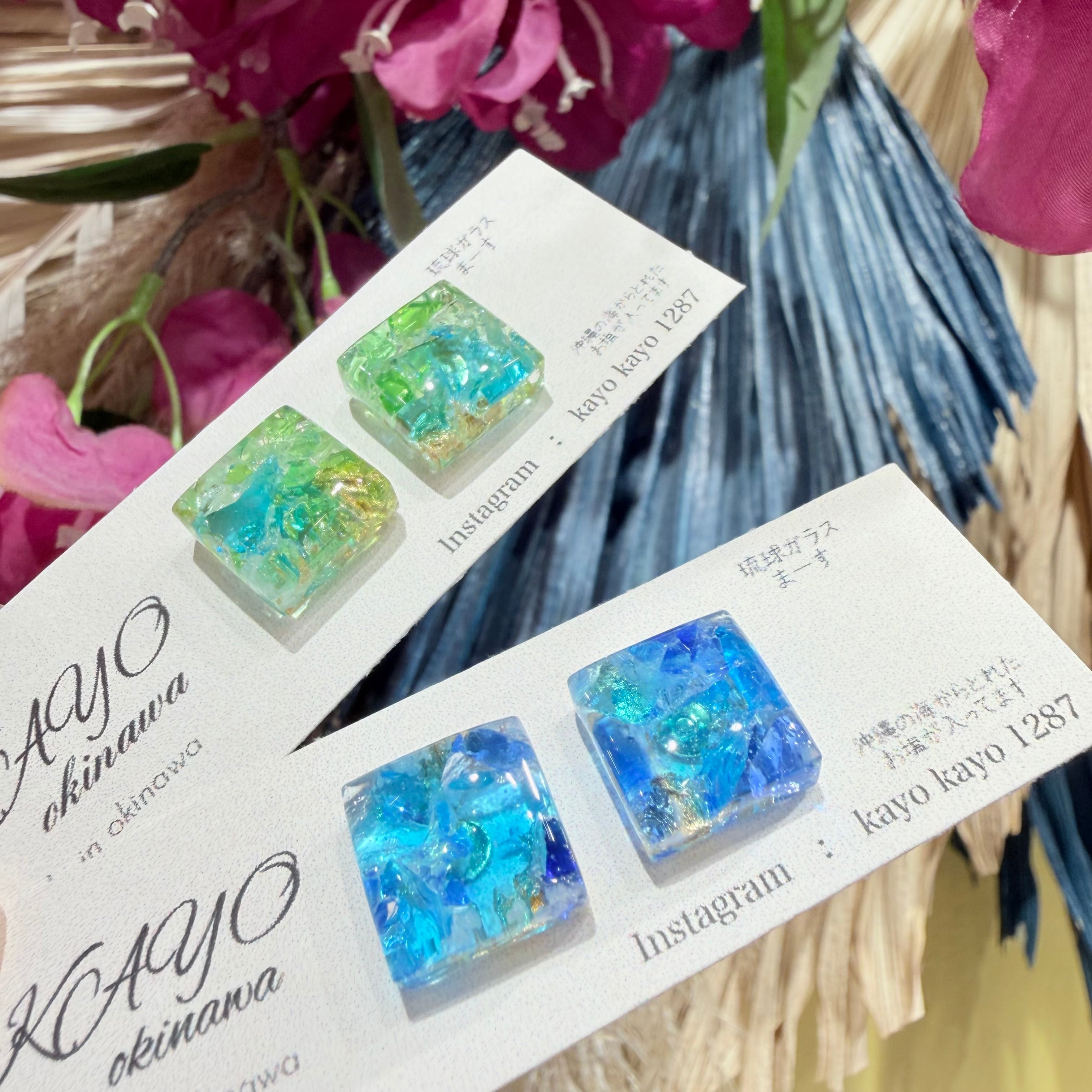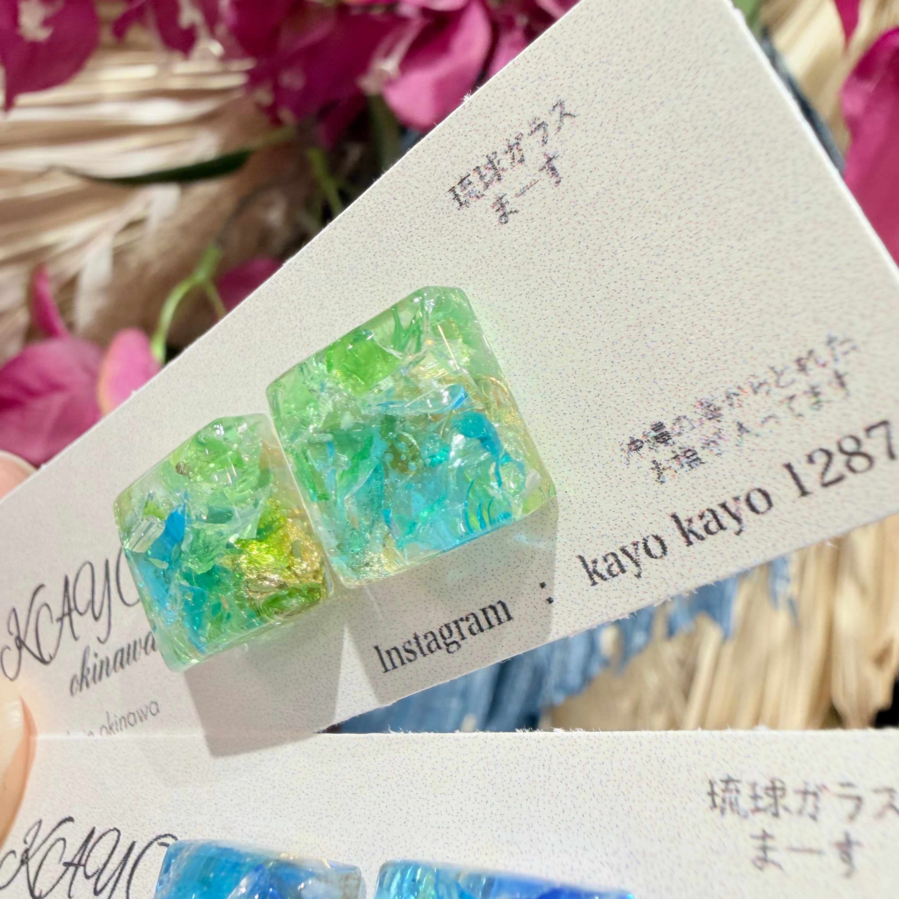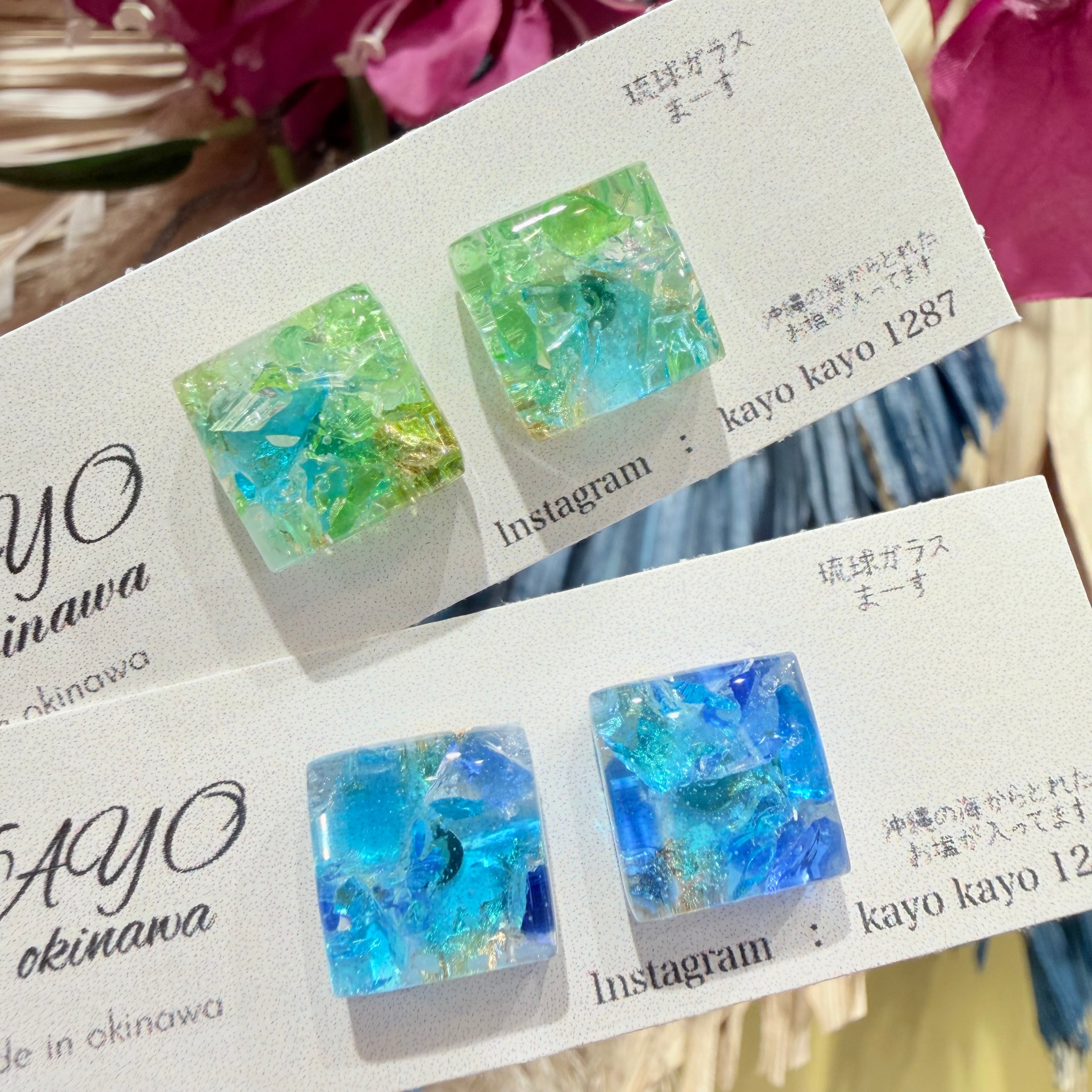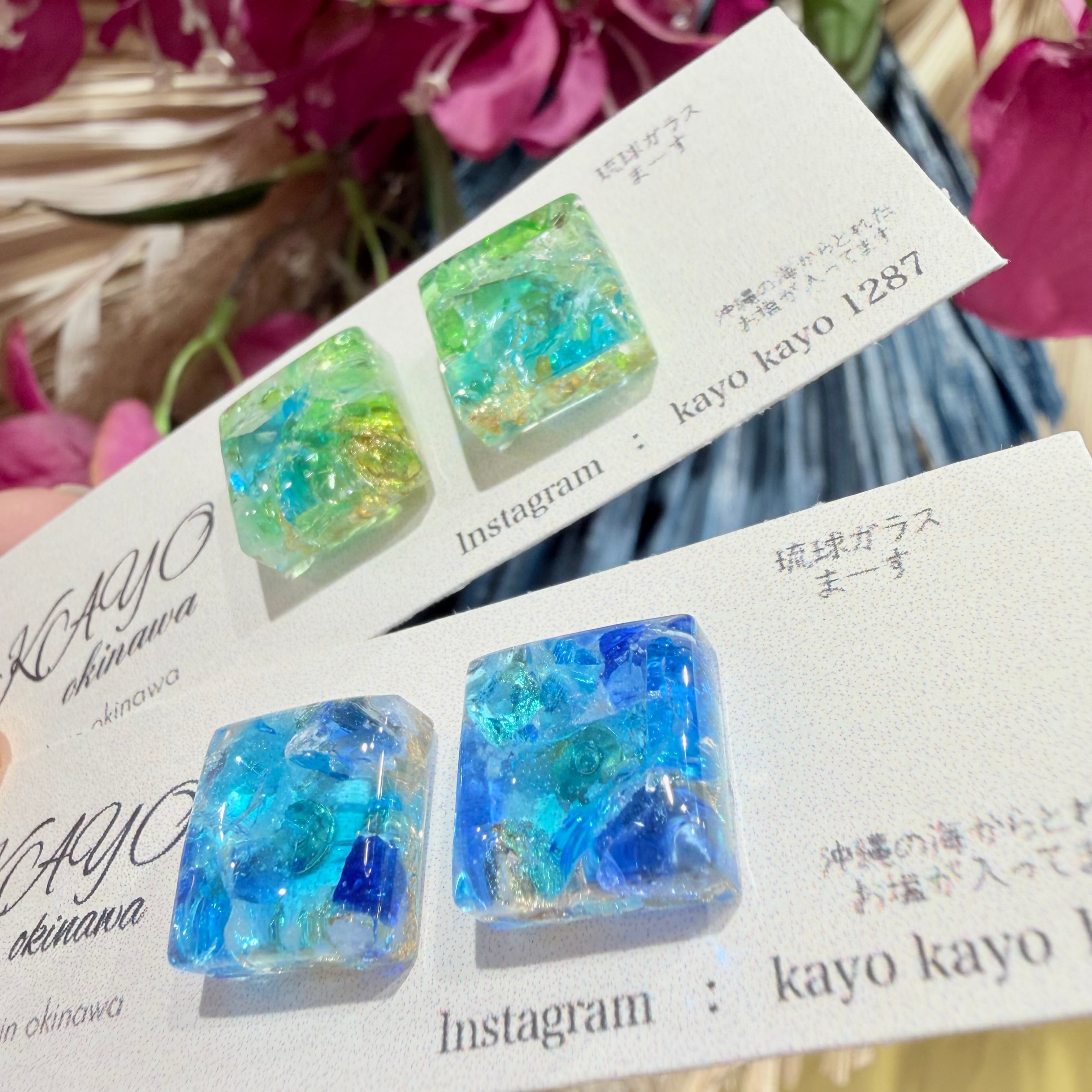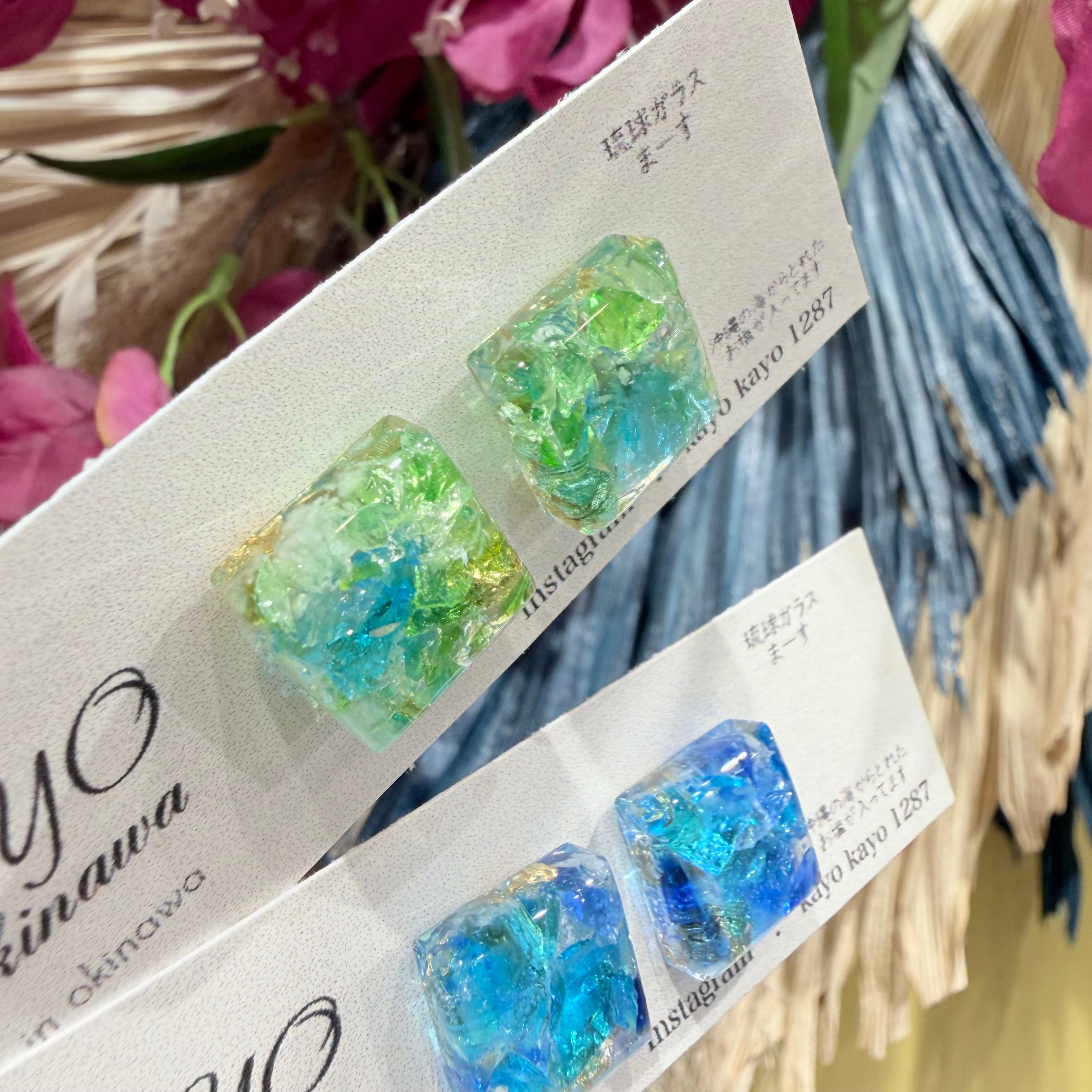 沖縄の海を思わせる美しい琉球ガラスのかけらが使用されたピアスが登場しました!