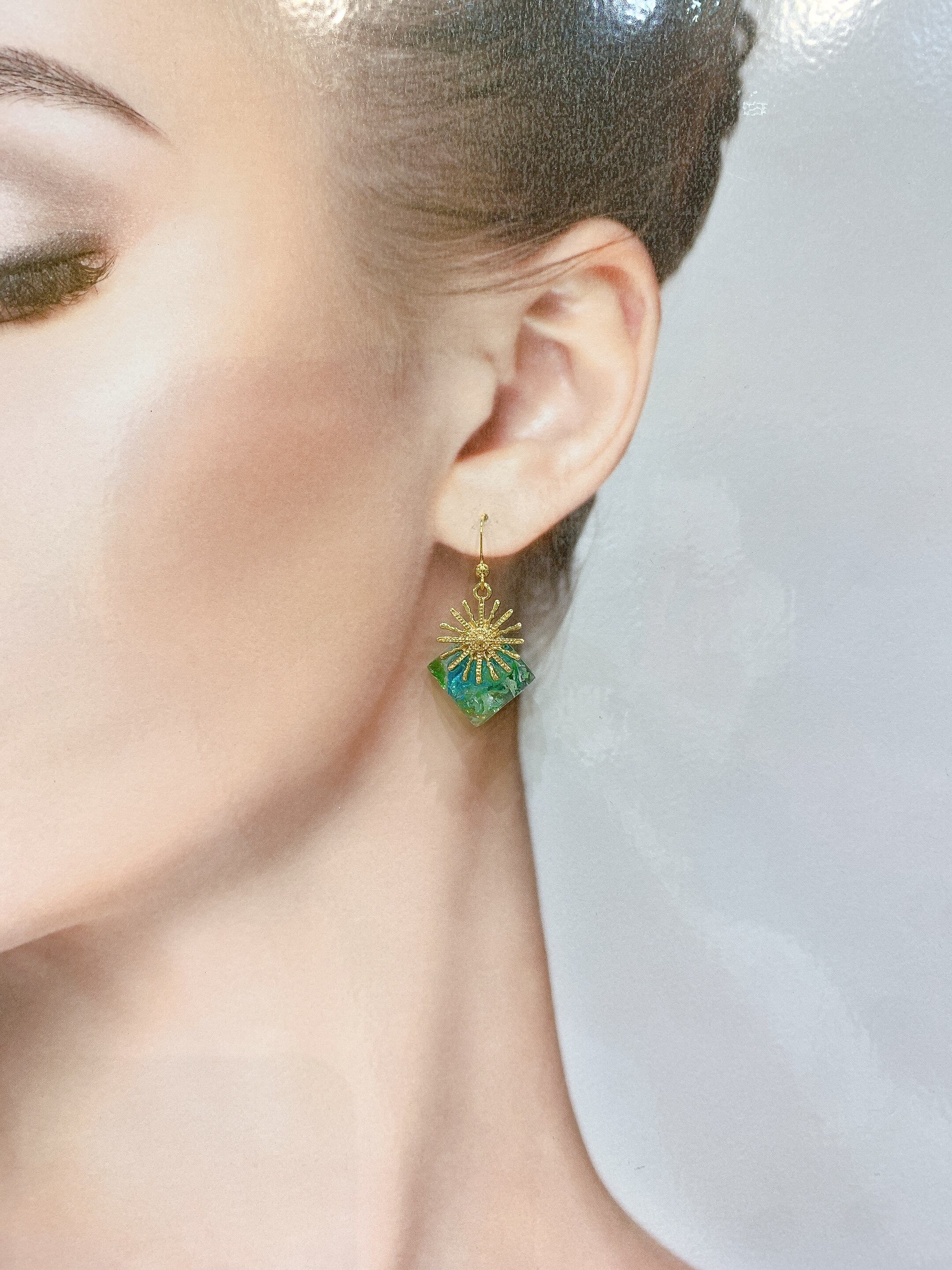 沖縄の海を思わせる美しい琉球ガラスのかけらが使用されたピアスが登場しました!