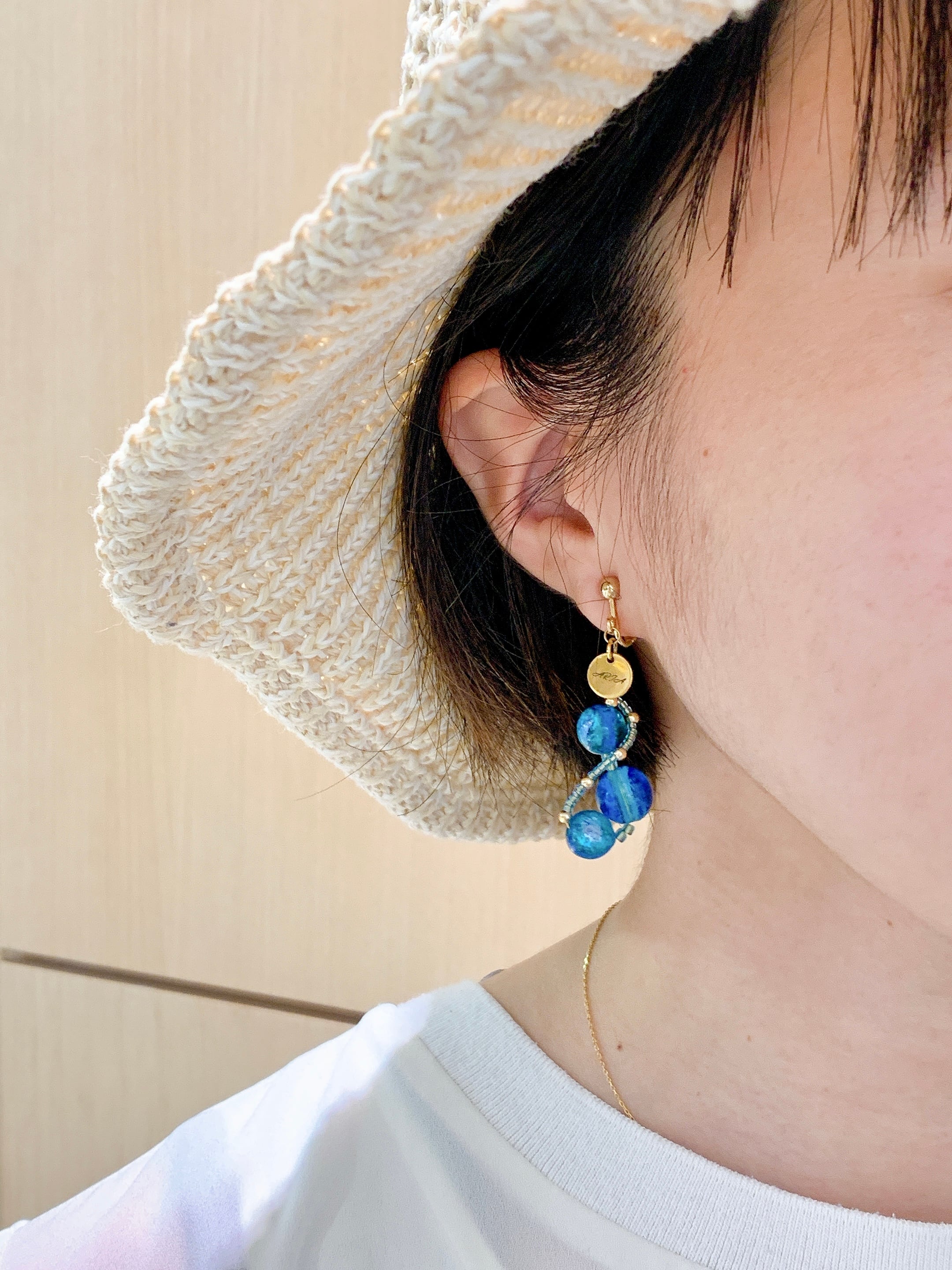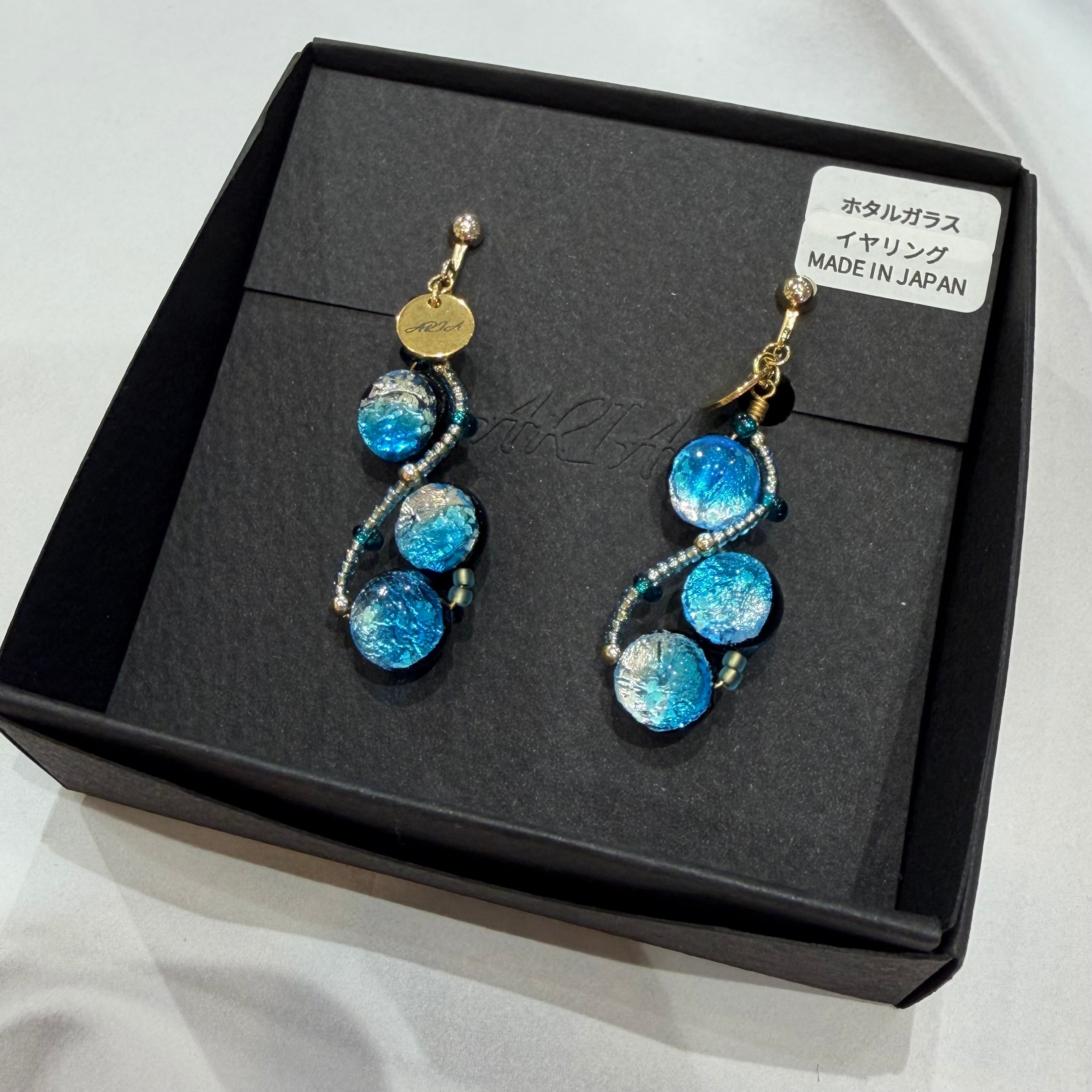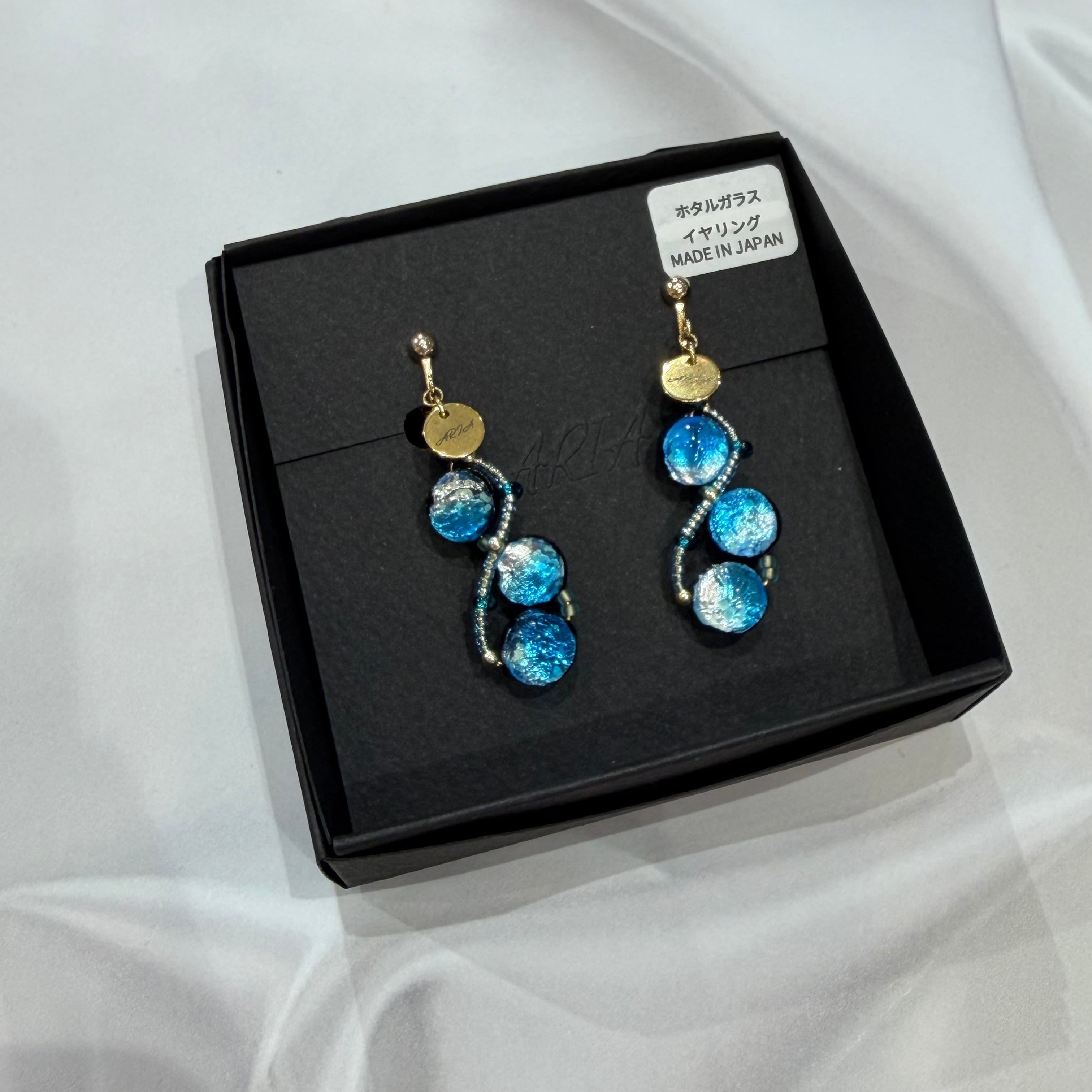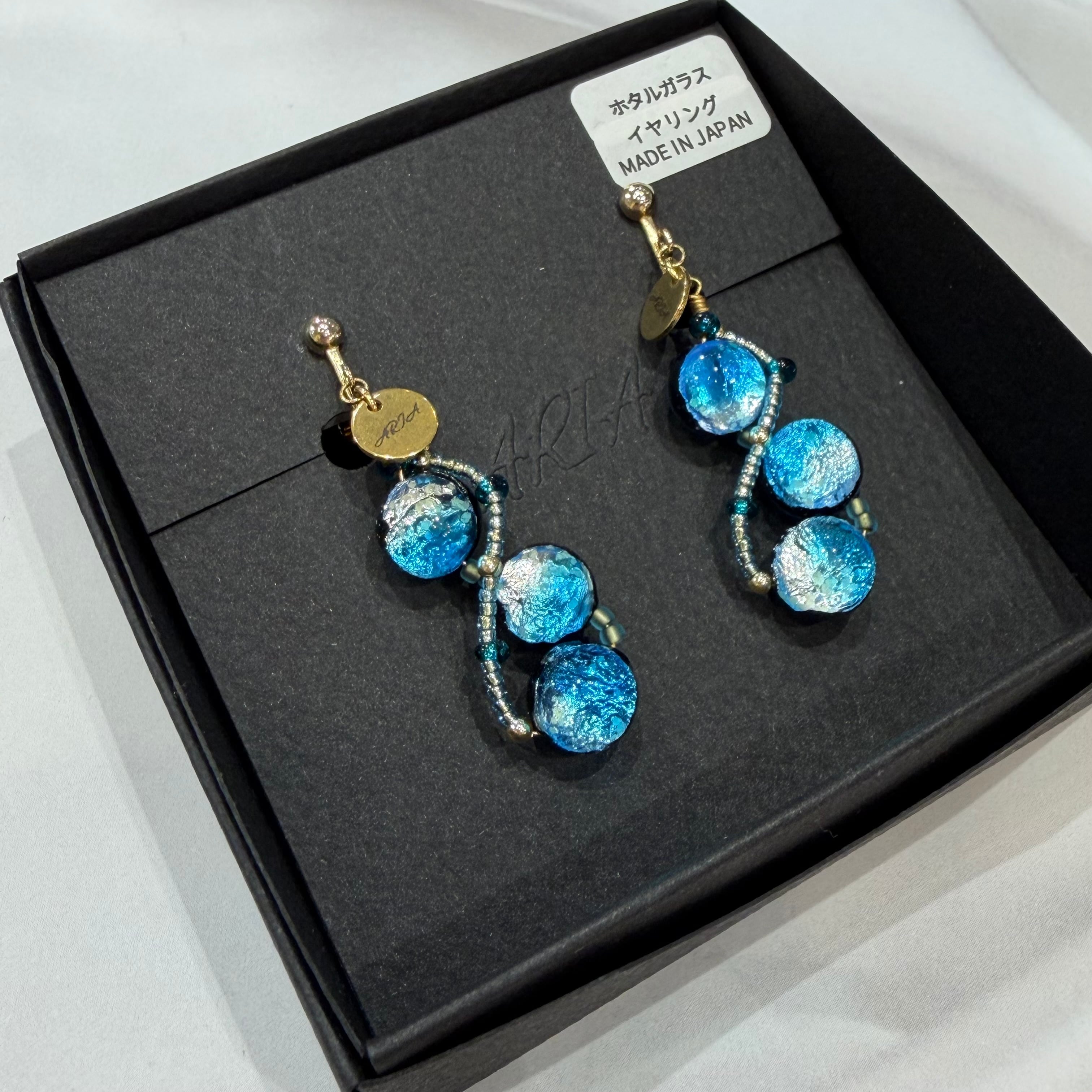 鮮やかな青色が印象的なARIAのホタルガラスのイヤリングが登場しました!