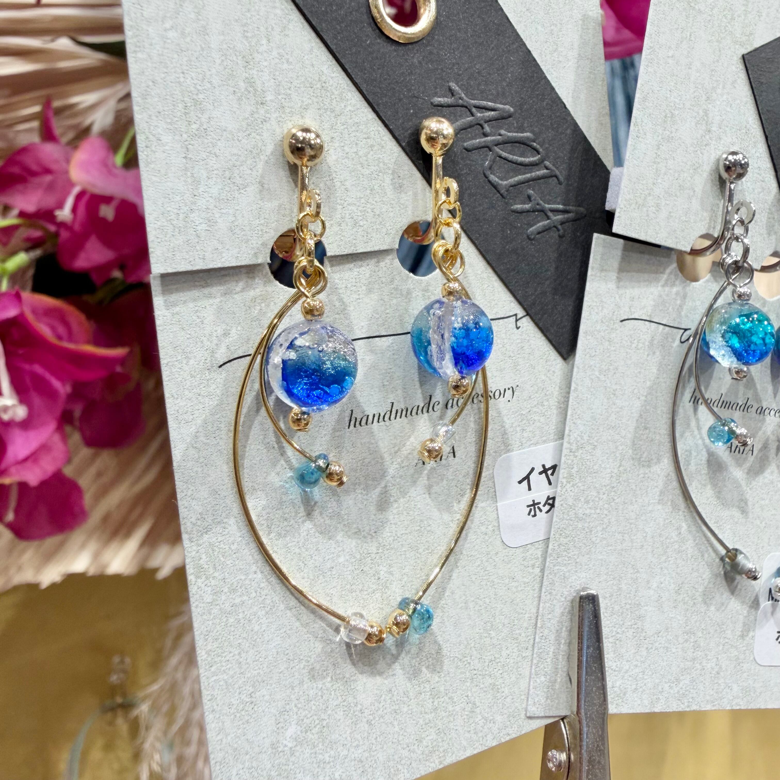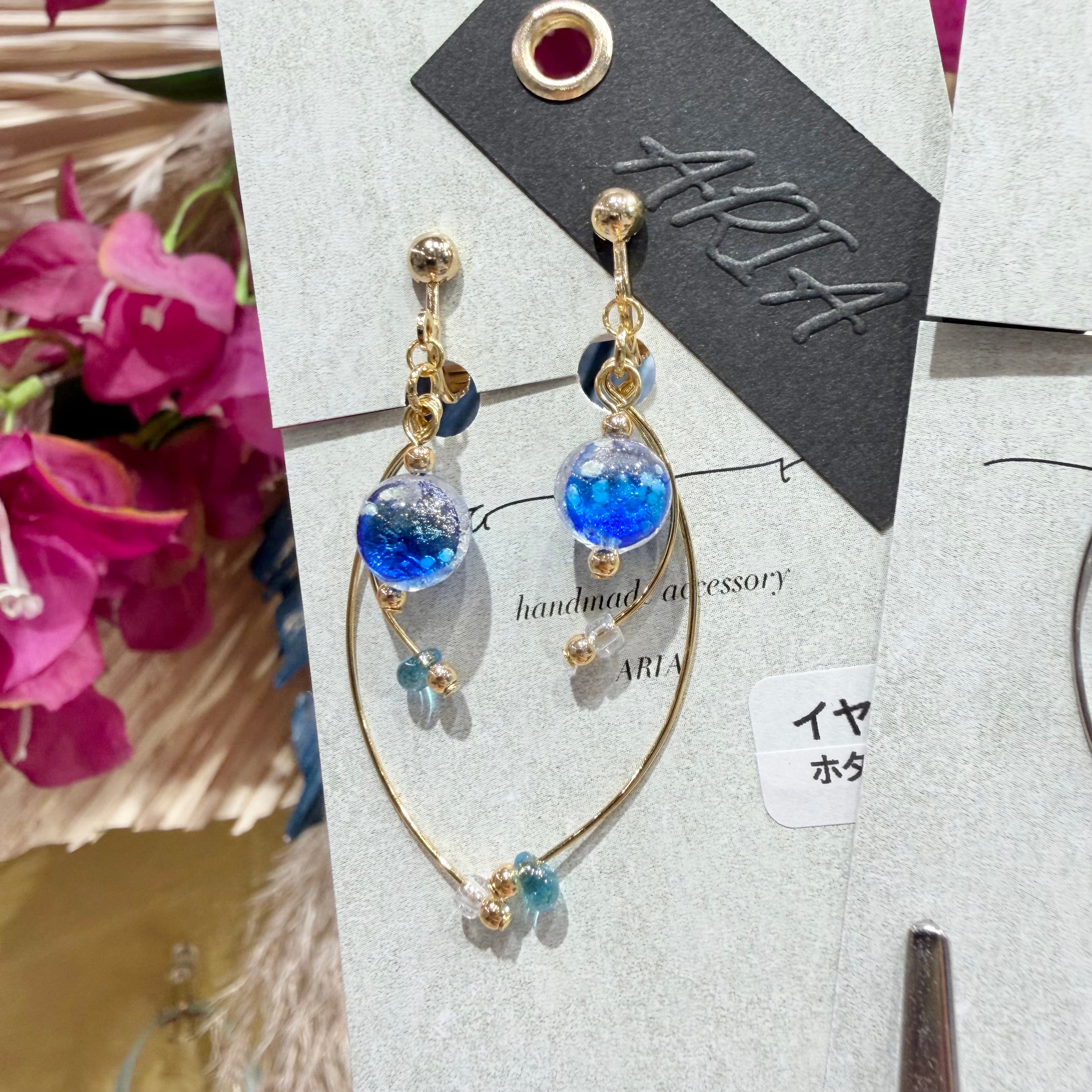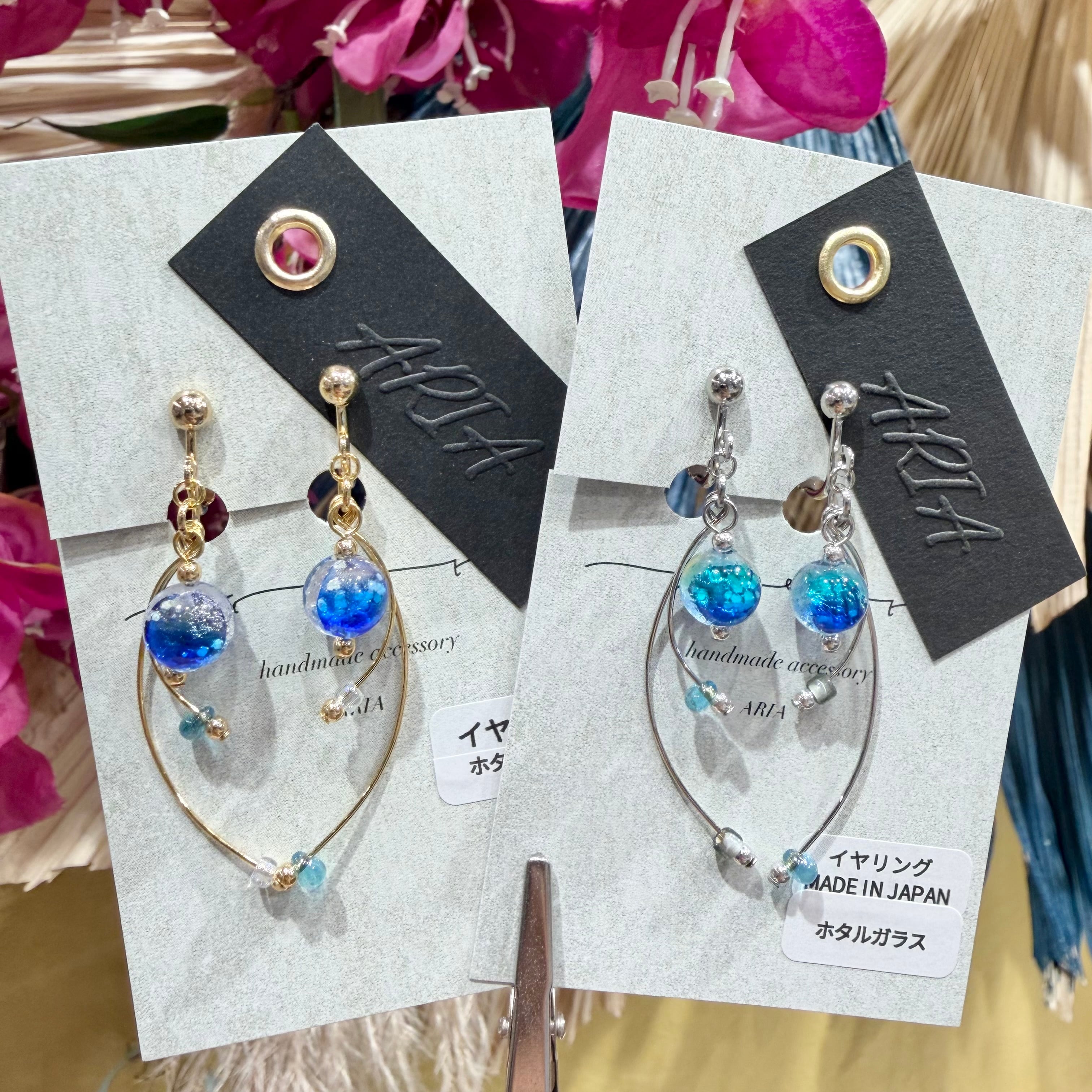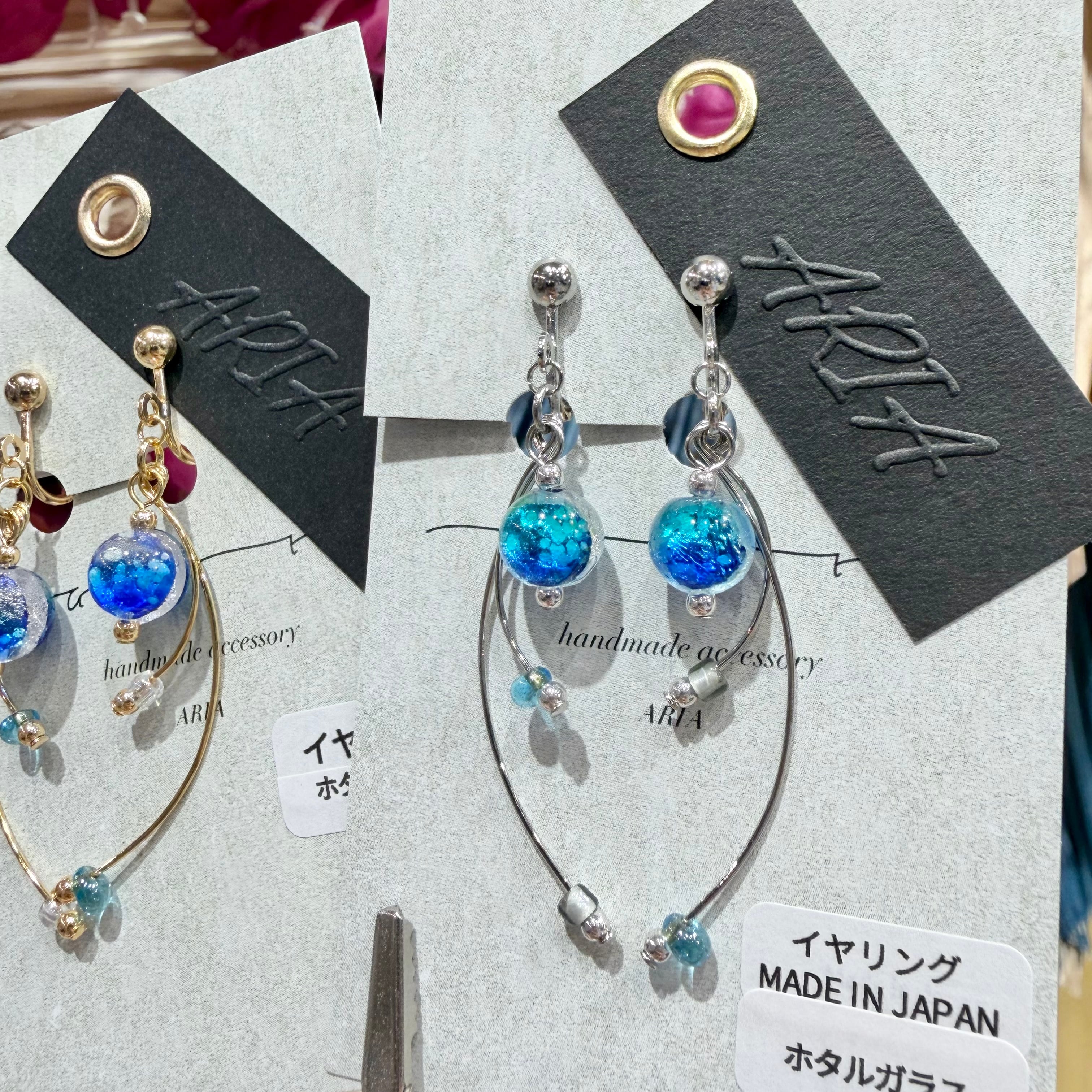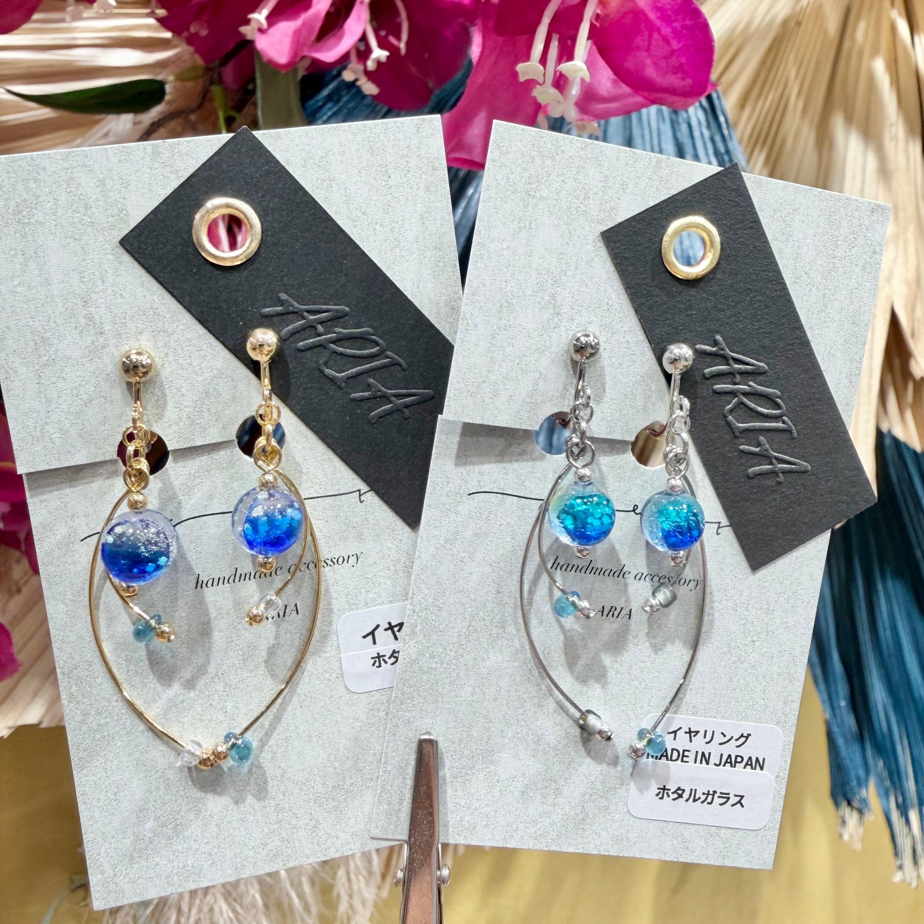 【人気】ホタルガラスイヤリング blue(T-A32-123)③、④