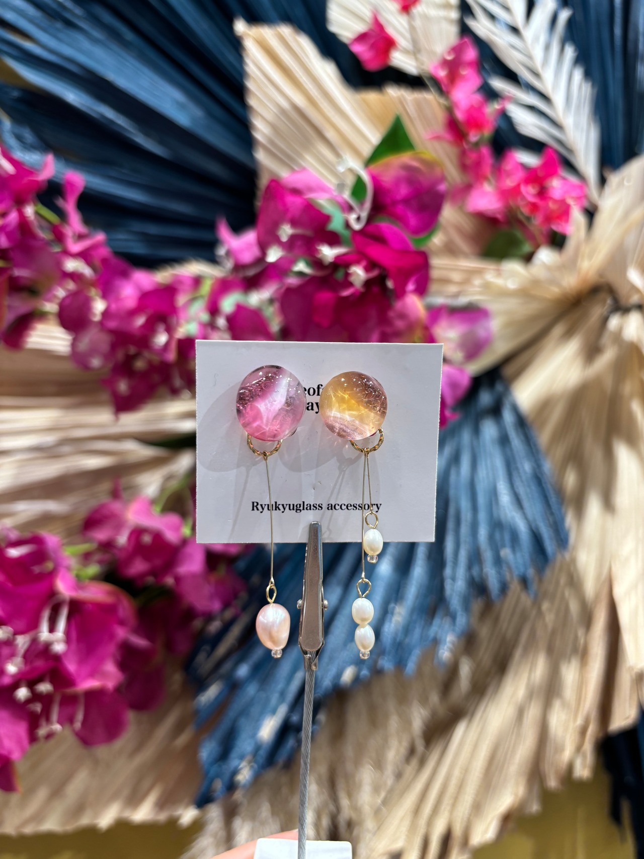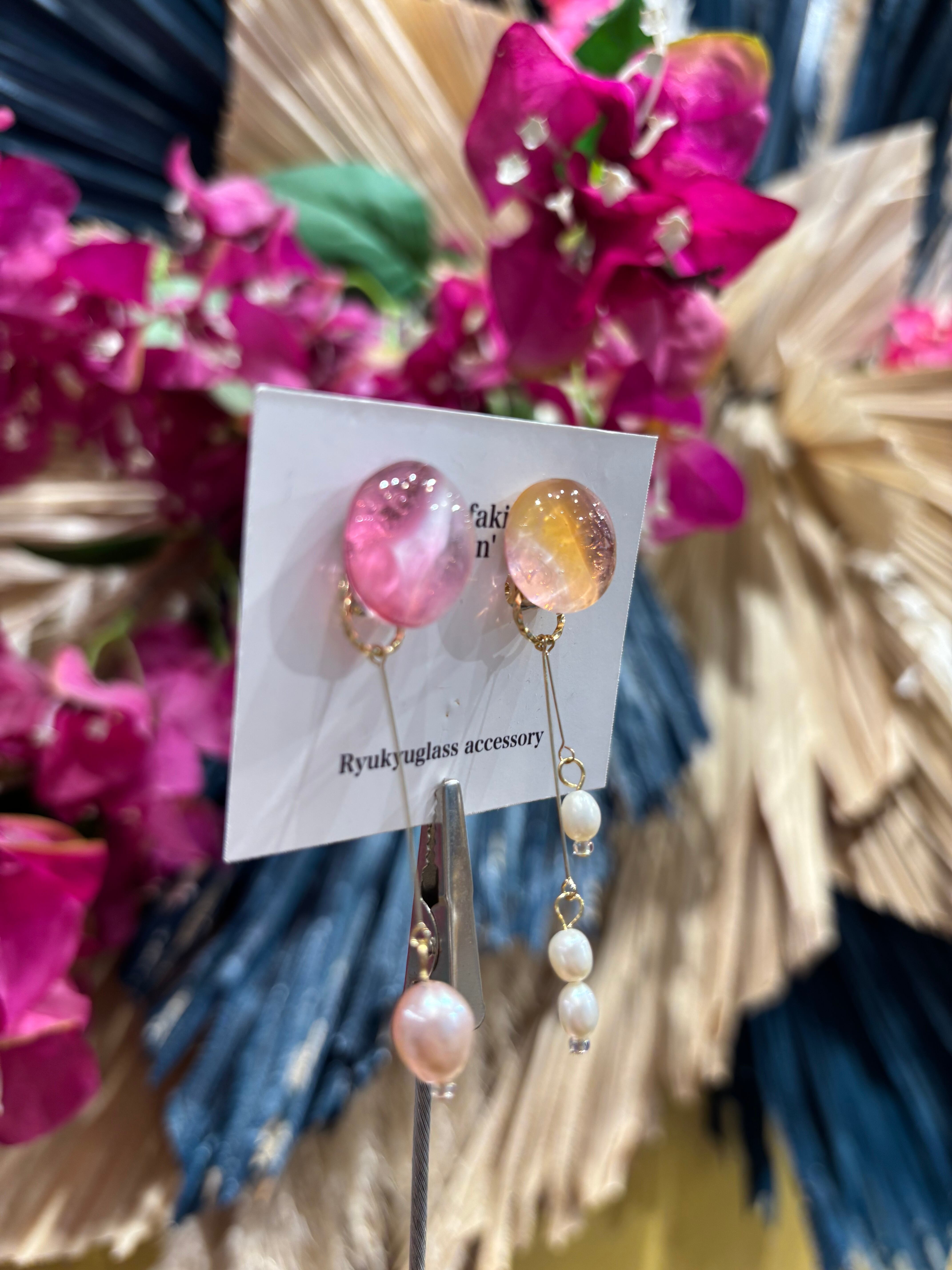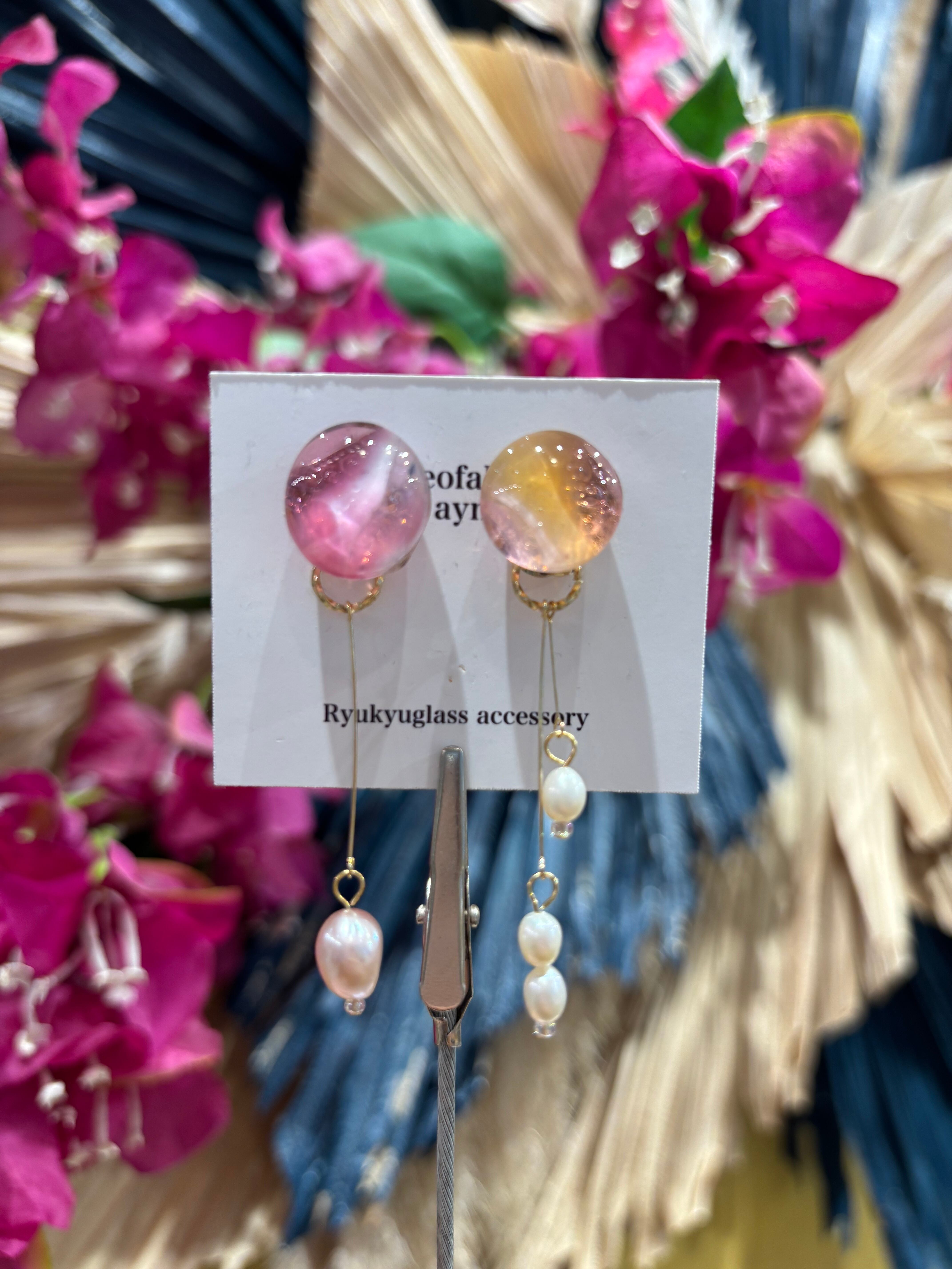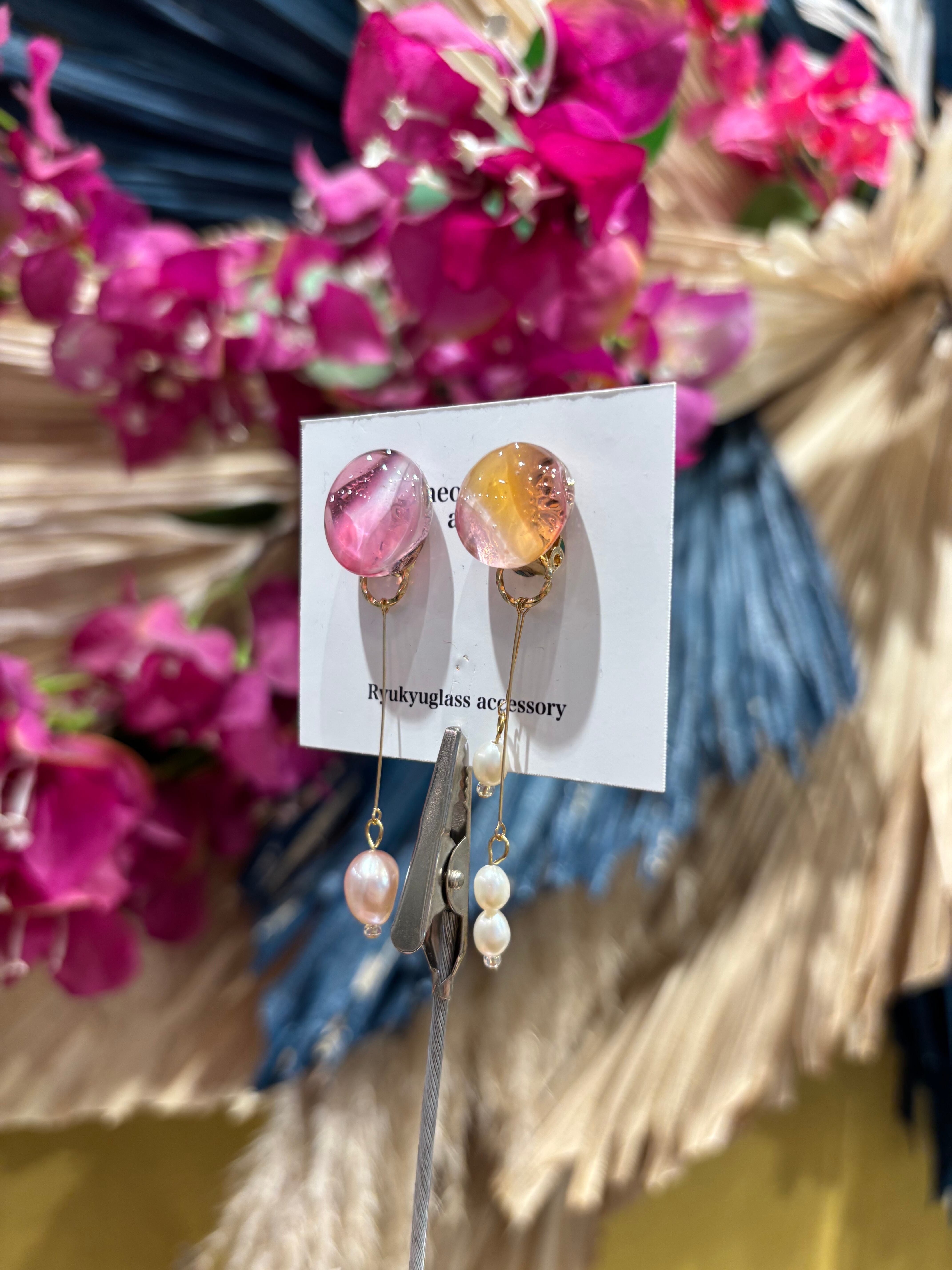 『 沖縄の魅力を耳元で感じる、ガラス×淡水パール イヤリング 』