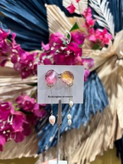 やわらかなピンクとオレンジのグラデーションが美しい、琉球ガラスピアス。