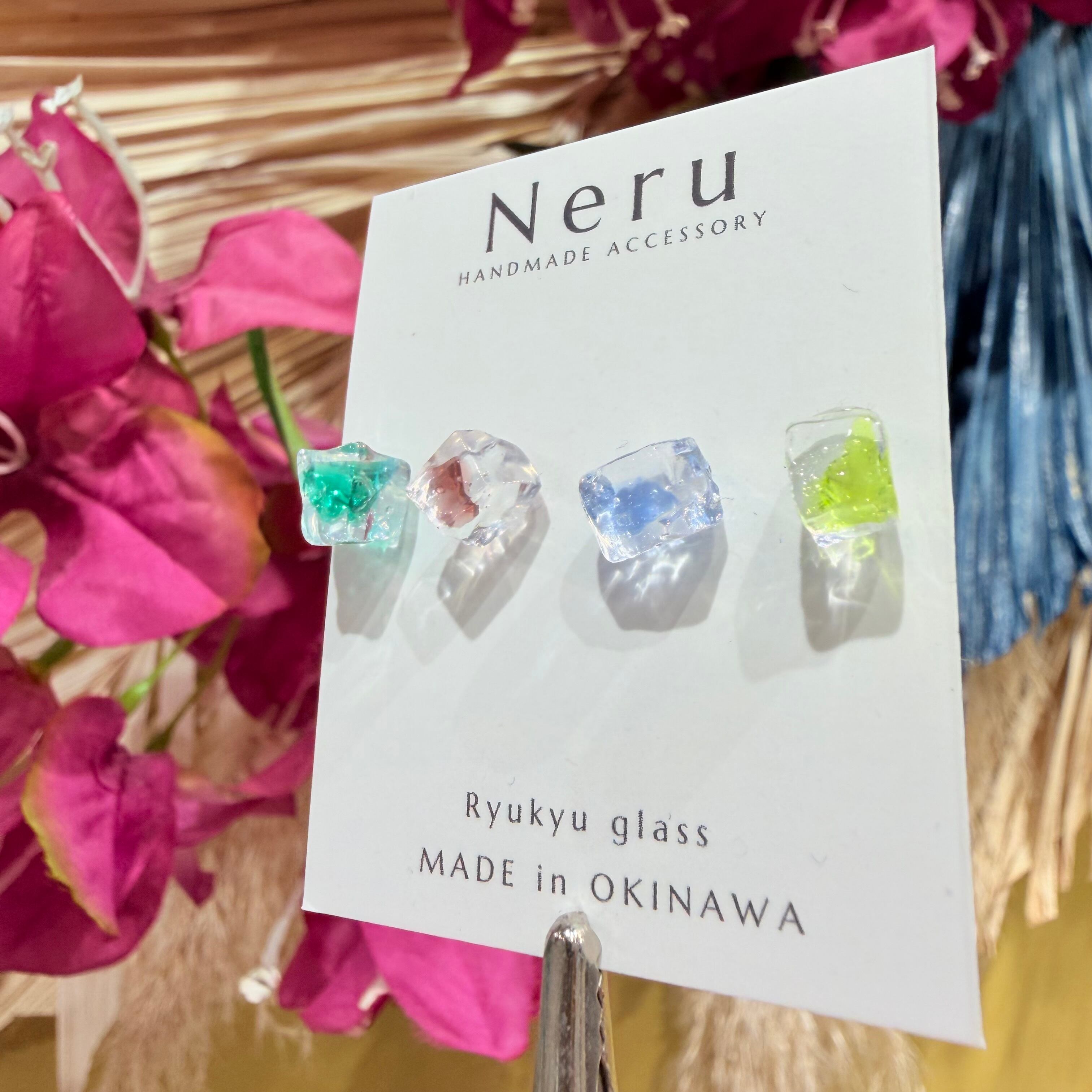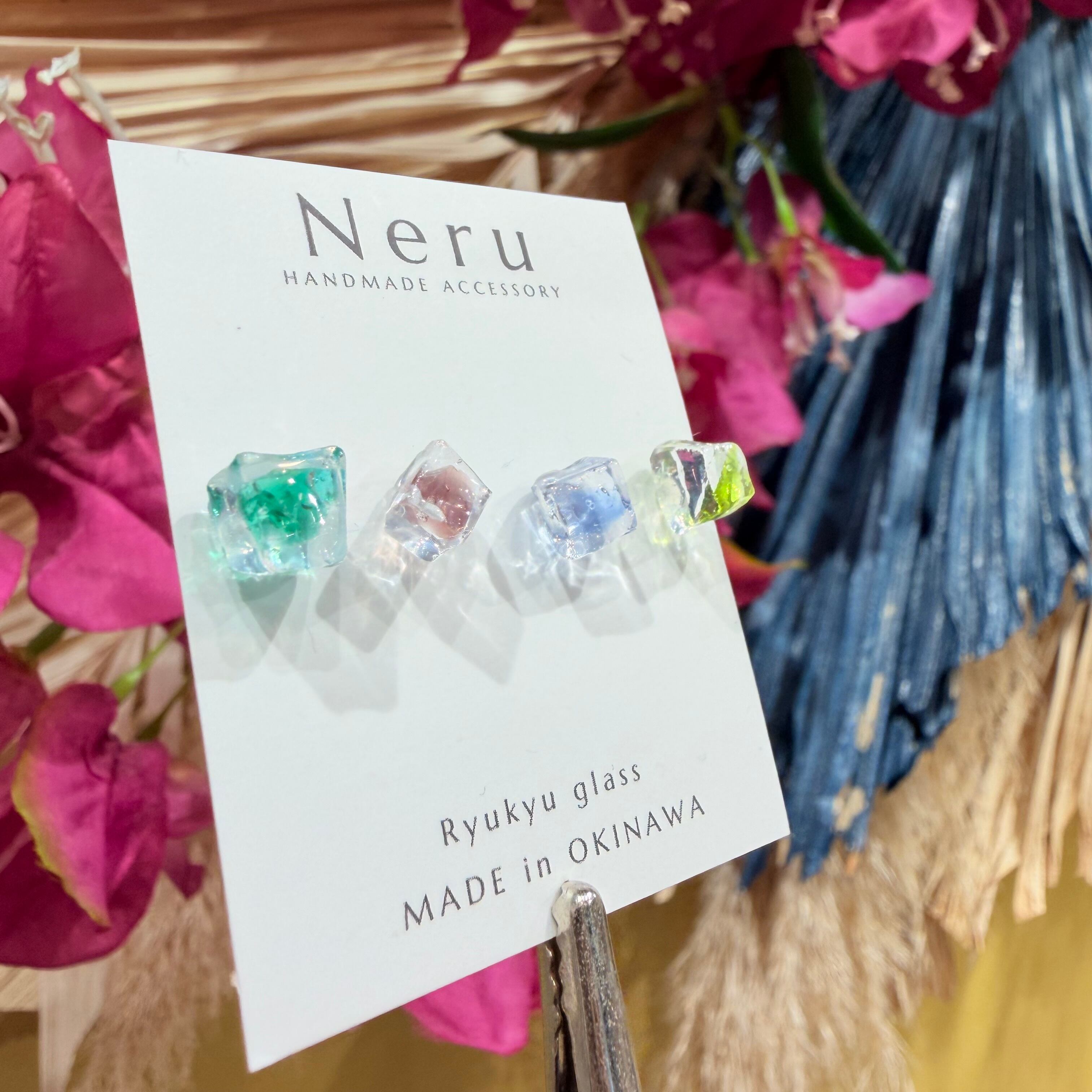 わずか5ミリの琉球ガラスのカケラを使用した繊細なデザイン。色とりどりの琉球ガラスは、まるで南国の海から生まれた宝石のように、さりげなく耳元を華やかにします。手作りの温もりが詰まったデザインは、光を受けてきらりと輝き、あなたの日常に特別な瞬間をもたらします!
