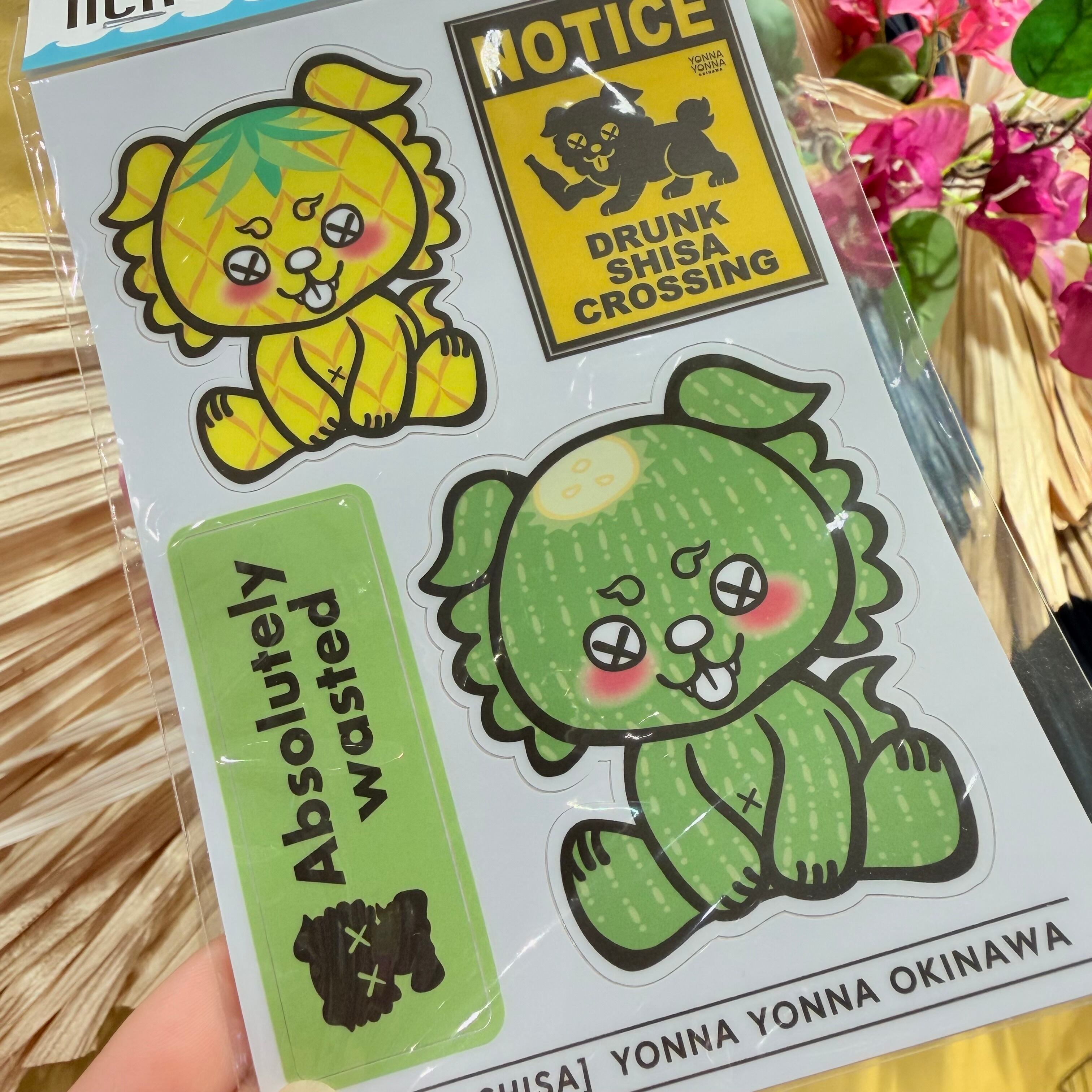 いーちょんシーサー(ほろ酔いシーサー)が描かれた可愛いステッカー。