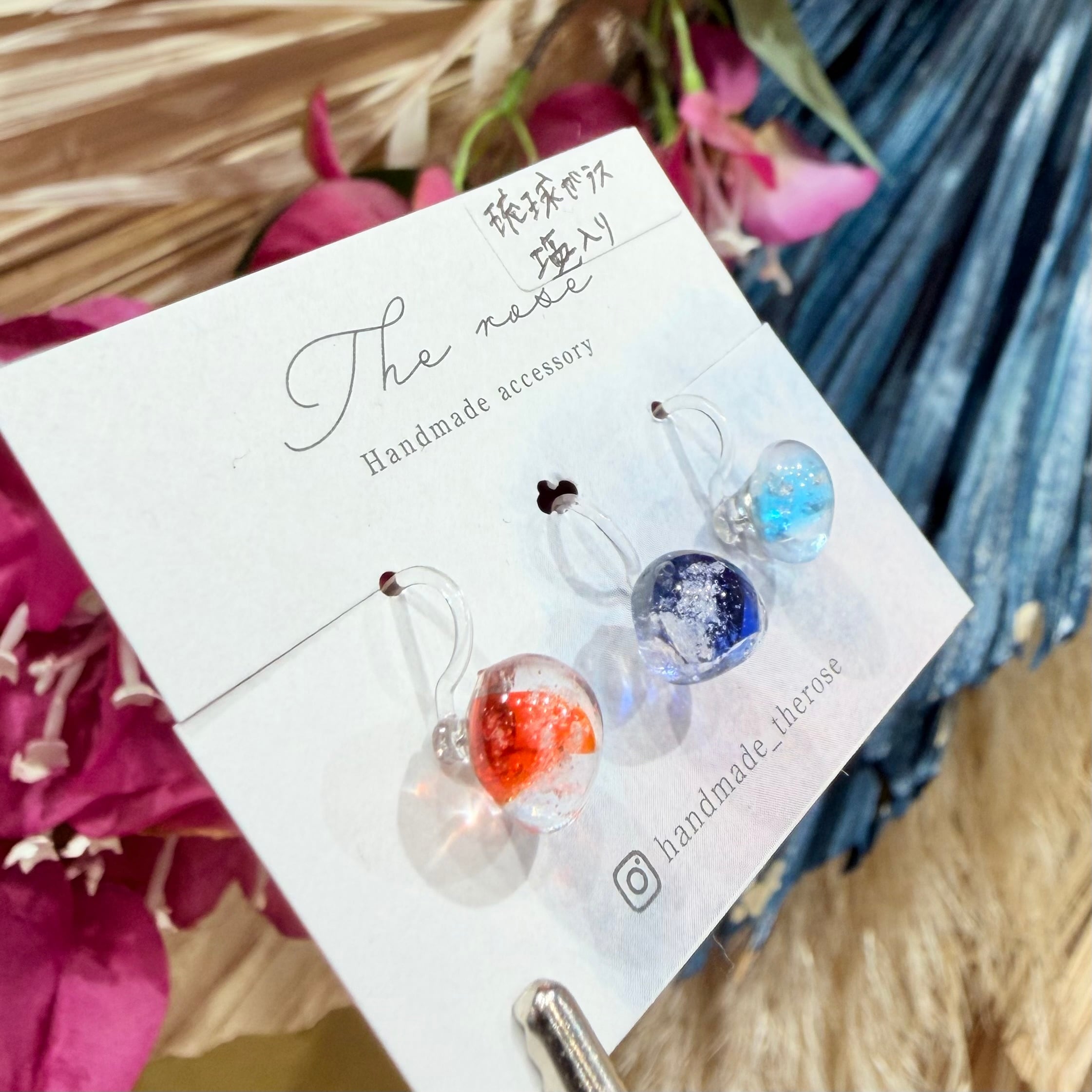 **〜琉球ガラス&まーす入り 樹脂イヤリング〜**