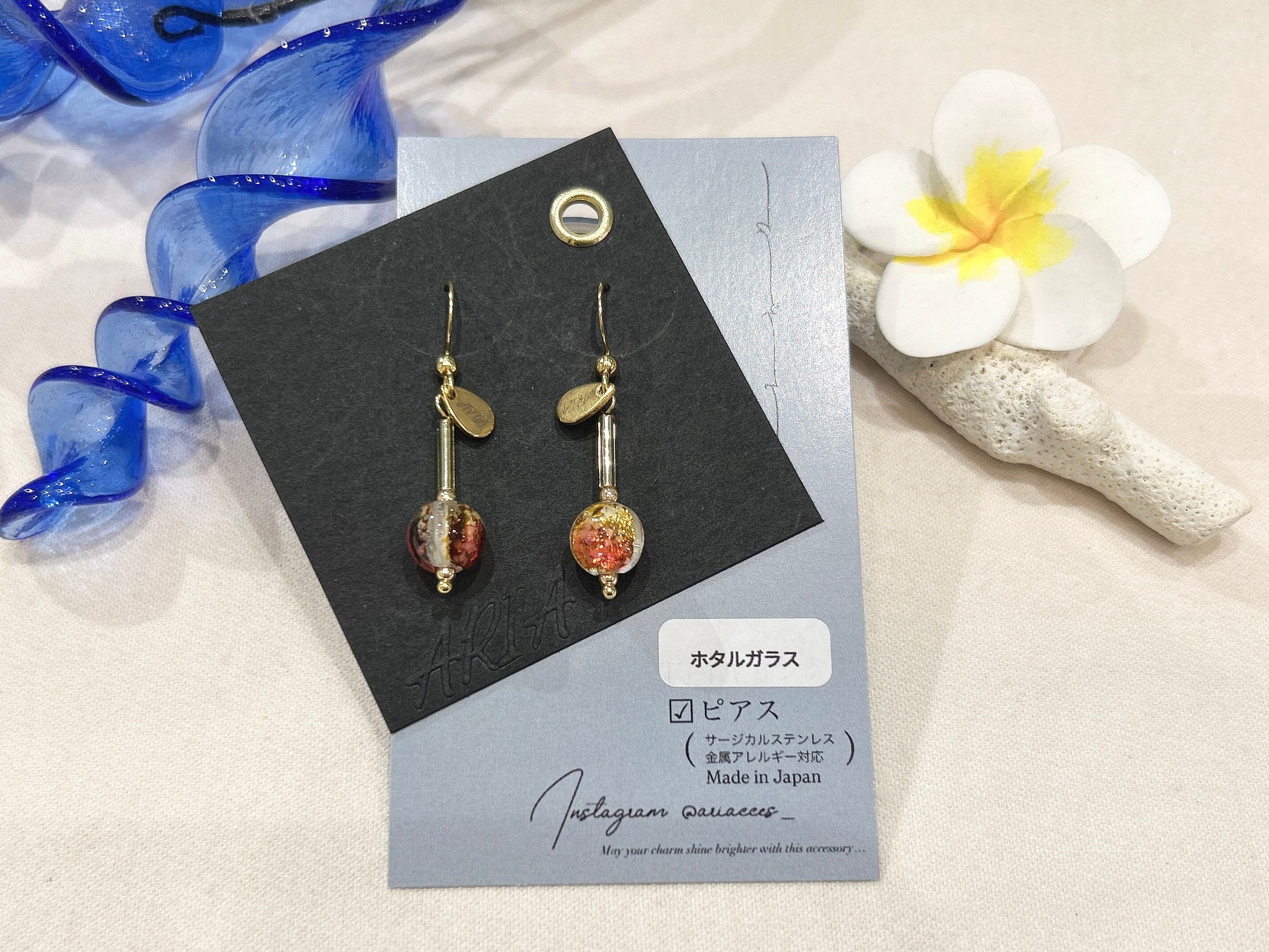 ホタルガラスピアス サージカルステンレス sunset(T-A32-28)