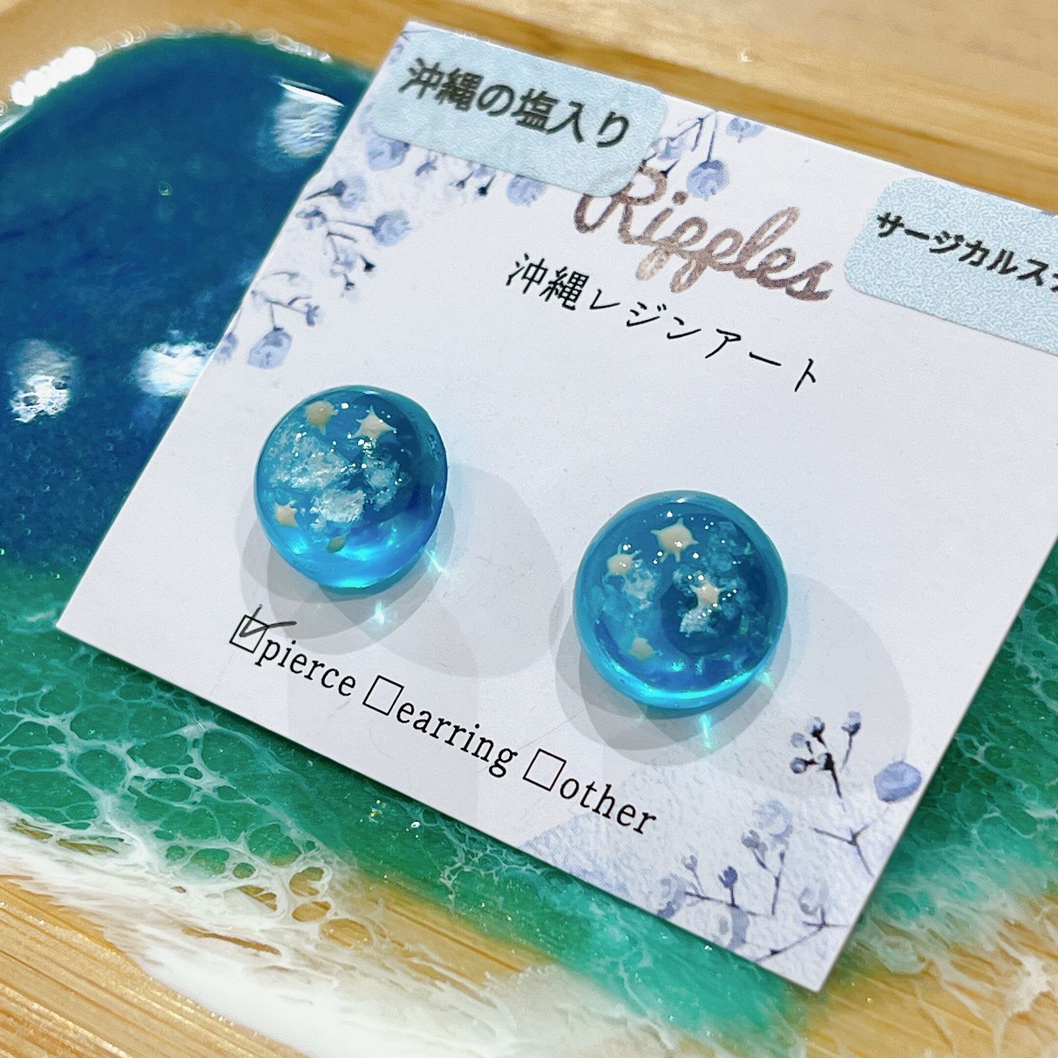 星砂や沖縄のまーす(塩)が入ったブルーピアス。