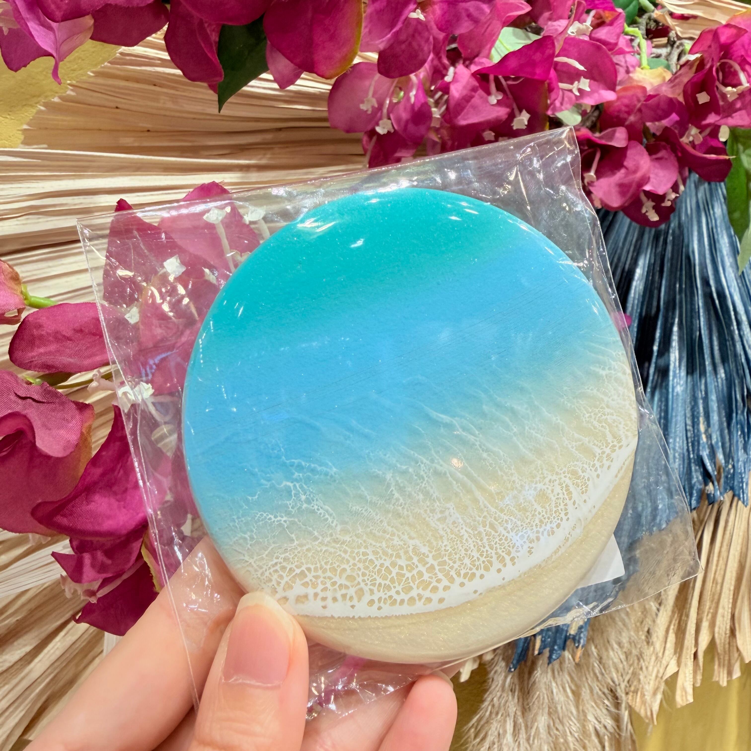 沖縄らしいエメラルドグリーンの波アートコースター!