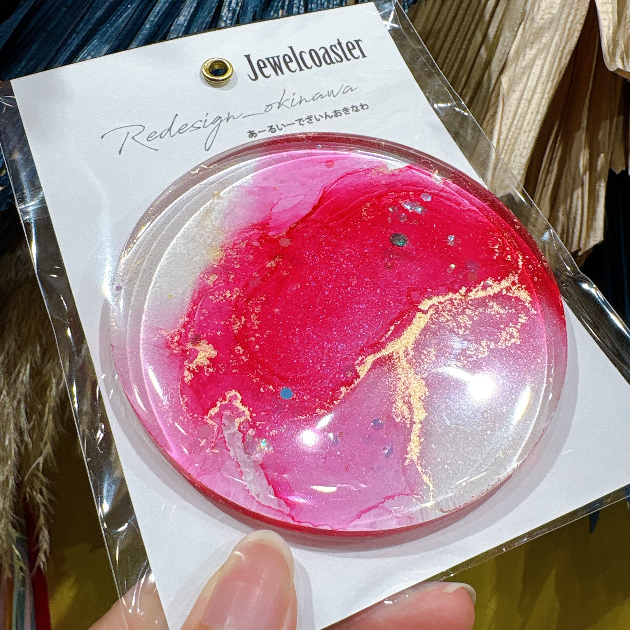 可愛らしいピンクとゴールドのコントラストが絶妙な、アルコールインクアートをあしらったコースターです!
