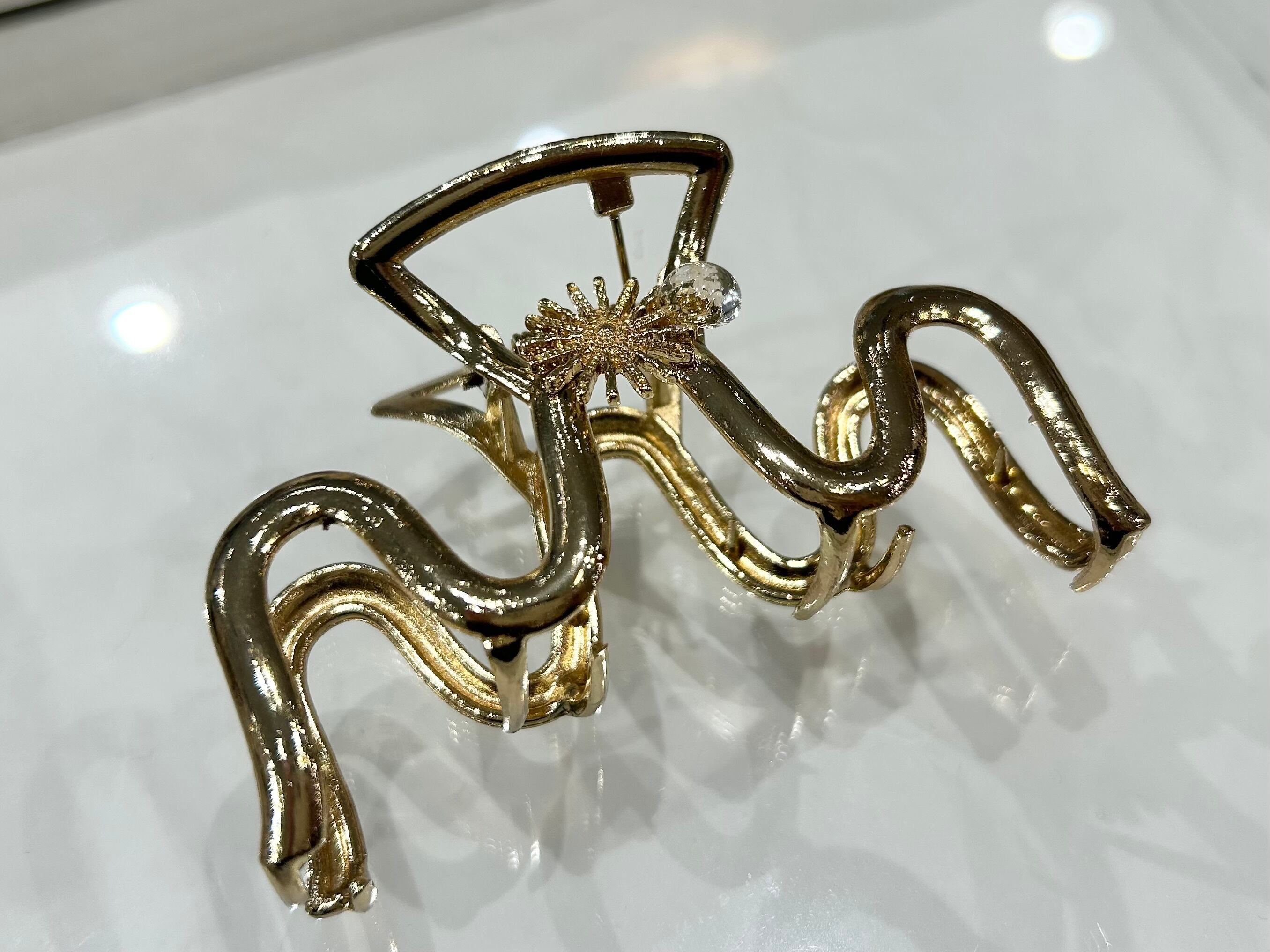 沖縄の魔除けの象徴、「まーす(塩)」をあしらったヘアクリップが登場です!太陽のモチーフが輝き、あなたの髪型に華やかさをプラスします。また、可動域が広く、しっかりと髪をホールドしてくれるので、安心して使用できます。