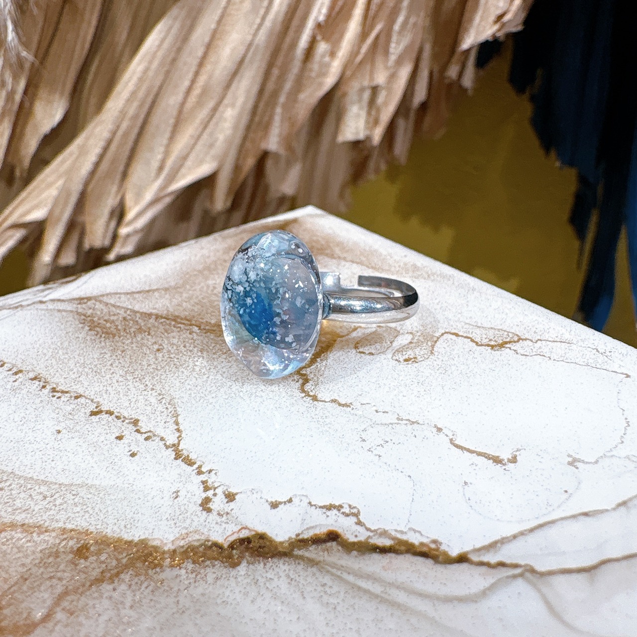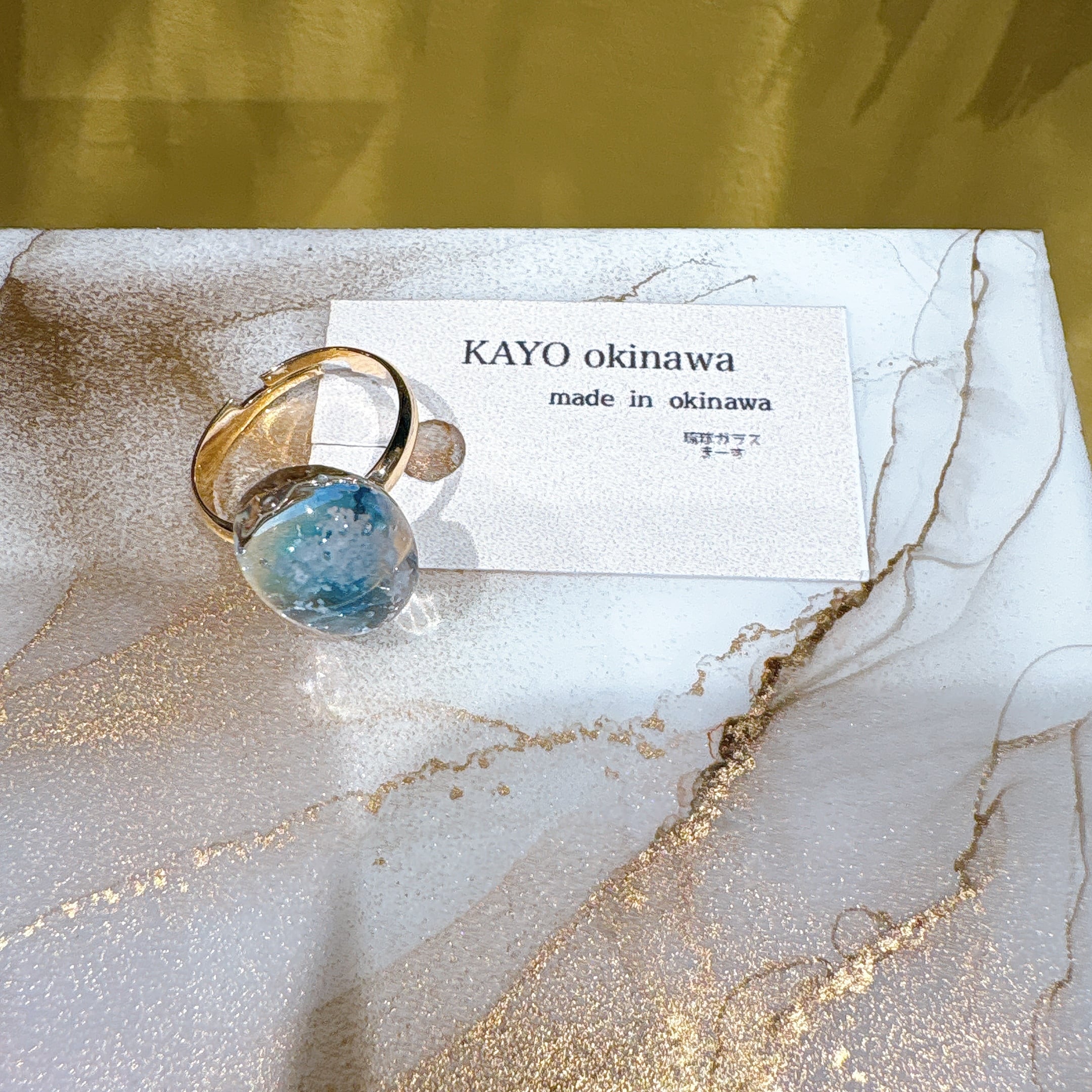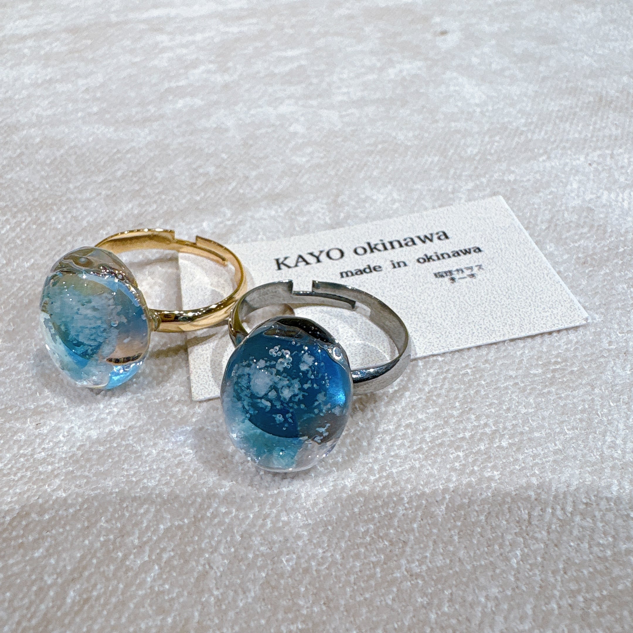 **〜サイズ調整可 まーす入り琉球ガラスリング〜**
