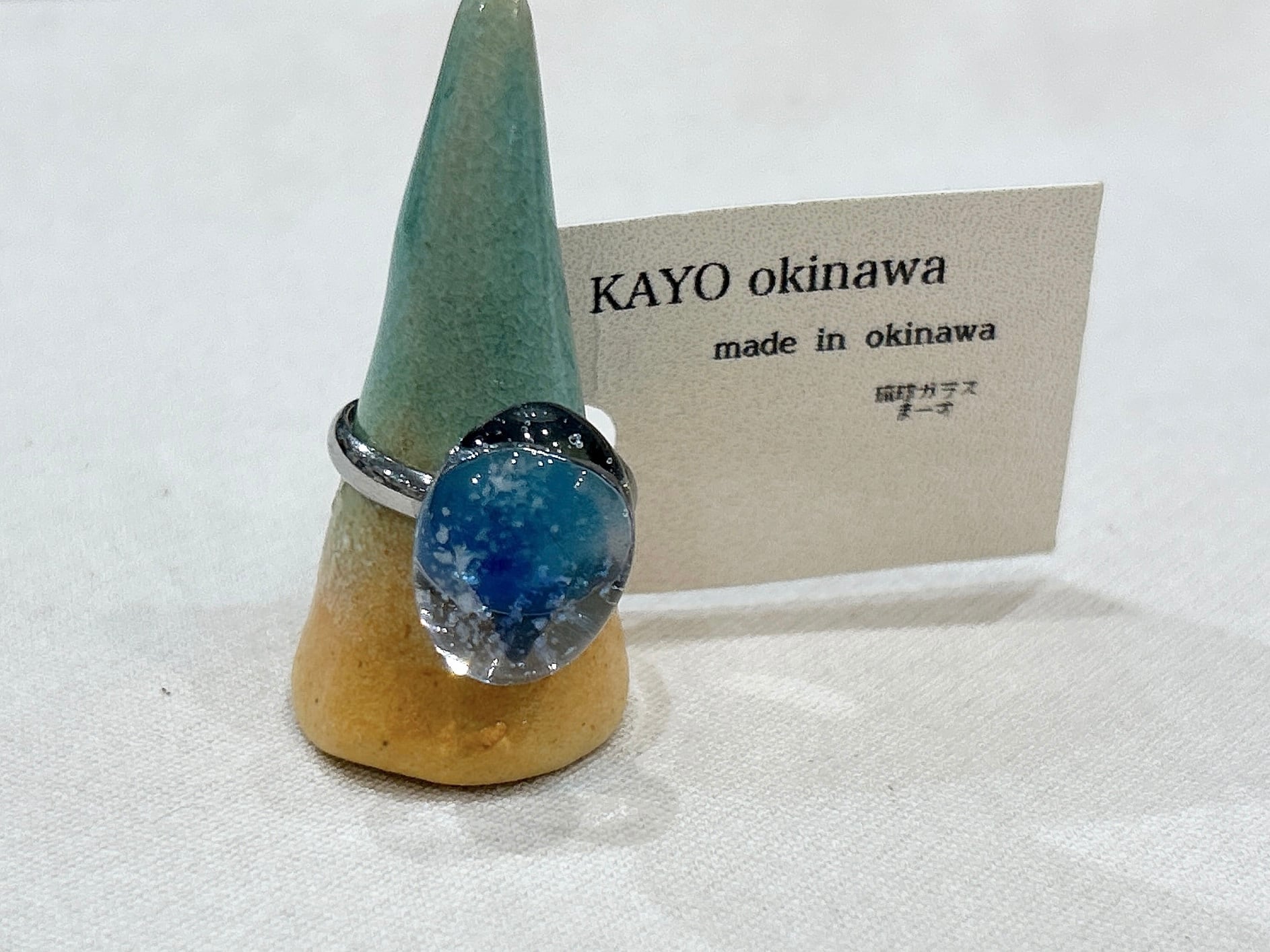#まーす入り琉球ガラスリング #ハンドメイド #サイズ調整可 #沖縄