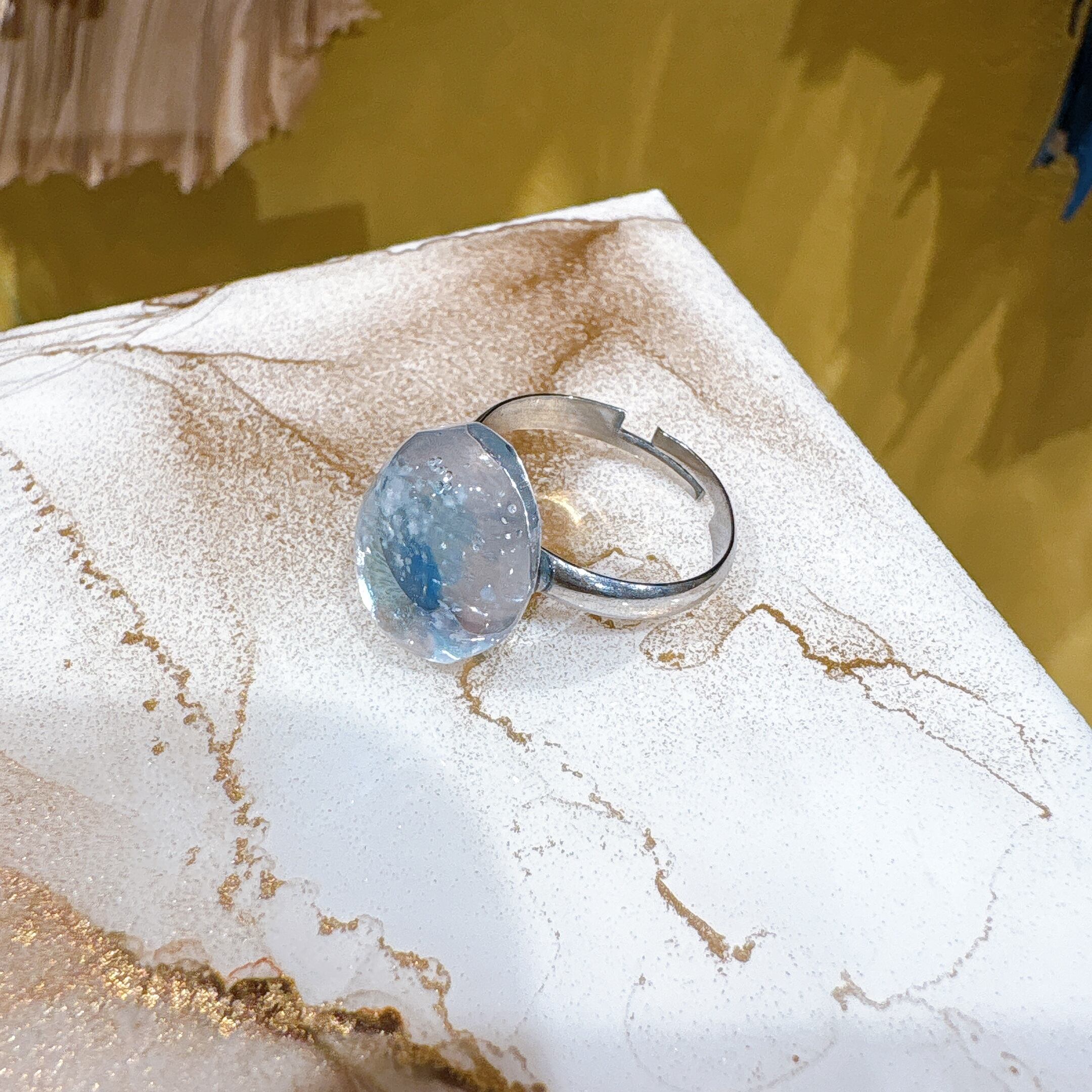 このリングは、自分でサイズ調整が可能ですので、あなただけのフィット感を楽しむことができます。大切な方へのギフトとしても最適です。沖縄の魔除けの意味を持つまーすを閉じ込めた特別なリングで、あなたの魅力を一層引き立ててください。